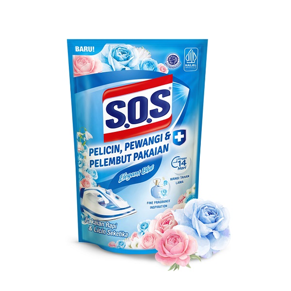 SOS Pelicin Pewangi pakaian merupakan cairan pelicin yang membantu mengurangi kusut saat menyetrika serta memberikan aroma menyegarkan pada pakaian.