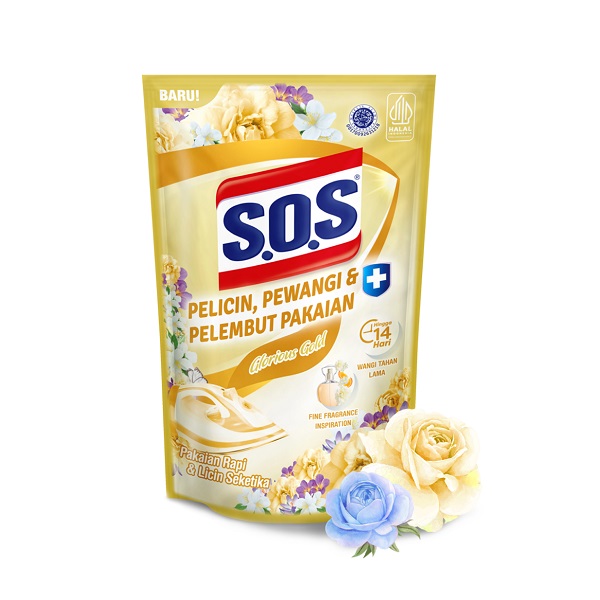 SOS Pelicin Pewangi pakaian merupakan cairan pelicin dengan formula lembut yang membuat pakaian harum dan mudah disetrika sepanjang hari.