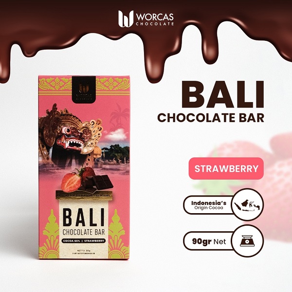 Merupakan Worcas Bali Chocolate Bar Raspberry, cokelat istimewa yang dipadukan dengan rasa raspberry yang manis dan sedikit asam. Sensasi lembut cokelat berpadu sempurna dengan rasa buah, menciptakan pengalaman makan yang menyenangkan. Ideal sebagai camilan premium atau suguhan spesial untuk tamu.