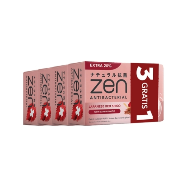 ZEN ANTIBACTERIAL BAR SOAP JAPANESE RED SHISO WITH SANDALWOOD PACK 4X60 GR